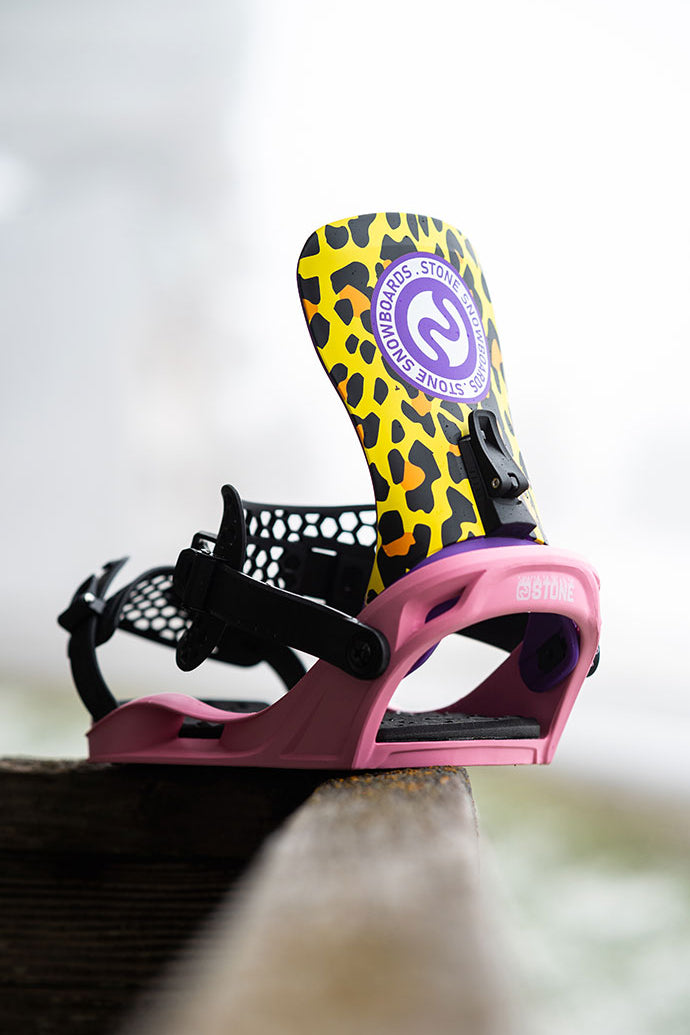 Bisous X Stone Snowboards Leopard Bindings